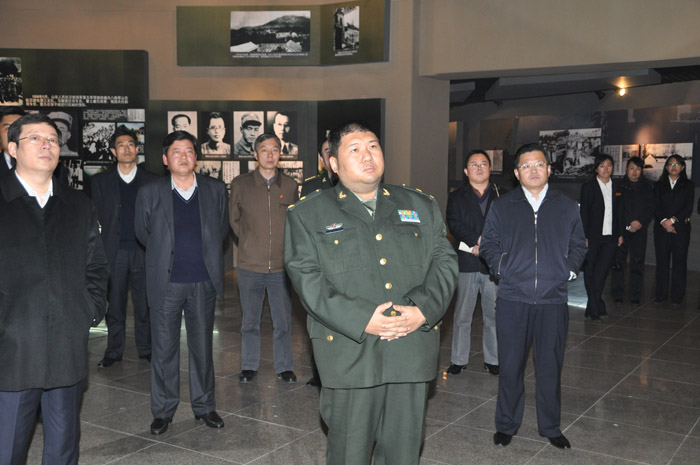 2010年11月19日,军科院战略部毛新宇部长(右一)来渤海园参观视察,副市长张兆宏(左一)陪同参观。